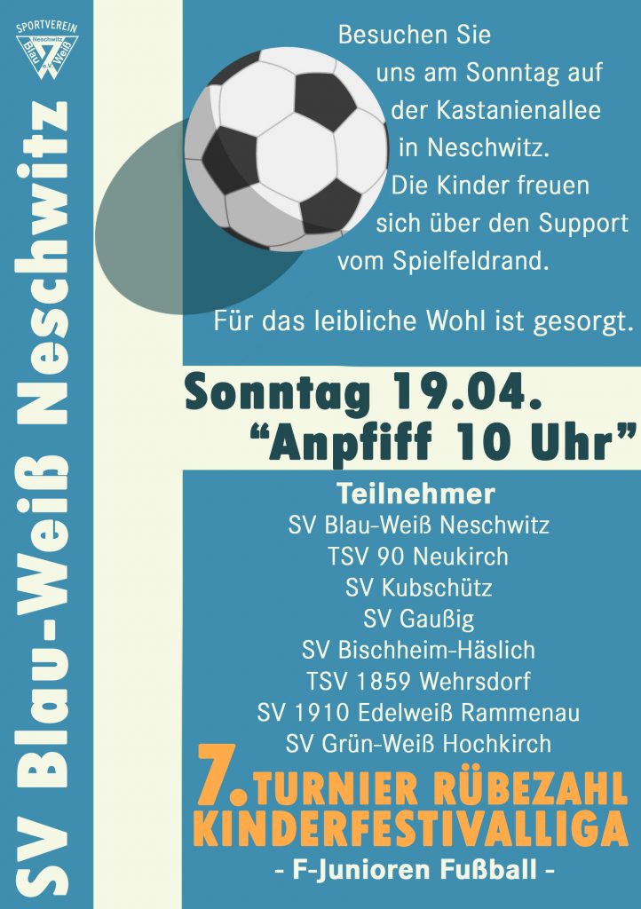 Am Sonntag, dem 19.04.2026, verwandelt sich die Kastanienallee in Neschwitz in eine lebendige Fußballbühne voller Energie, Teamgeist und strahlender Kinderaugen. Beim 7. Turnier der Rübezahl Kinderfestival-Liga treten junge Talente aus der Region gegeneinander an und zeigen, was in ihnen steckt.